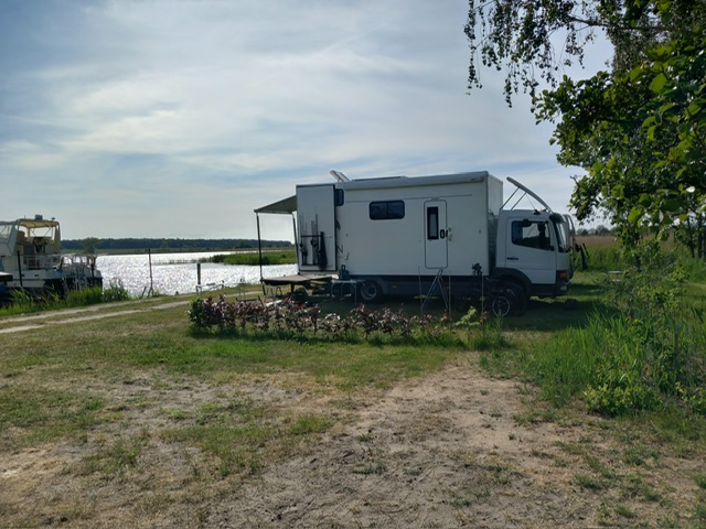 Unser nächstes Ziel ist Gotthun, direkt an der Müritz. Der Empfang auf dem Campingplatz ist etwas frostig – das Personal hat wohl keinen besonders guten Tag.